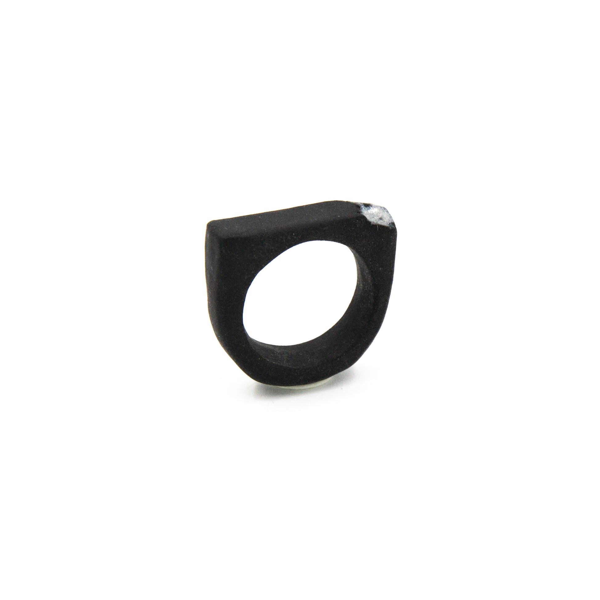- Bague en porcelaine noire teintée dans la masse.
