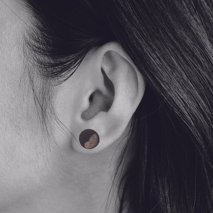 Des puces d'oreilles en porcelaine noire pour une touche d'élégance et de minimalisme.