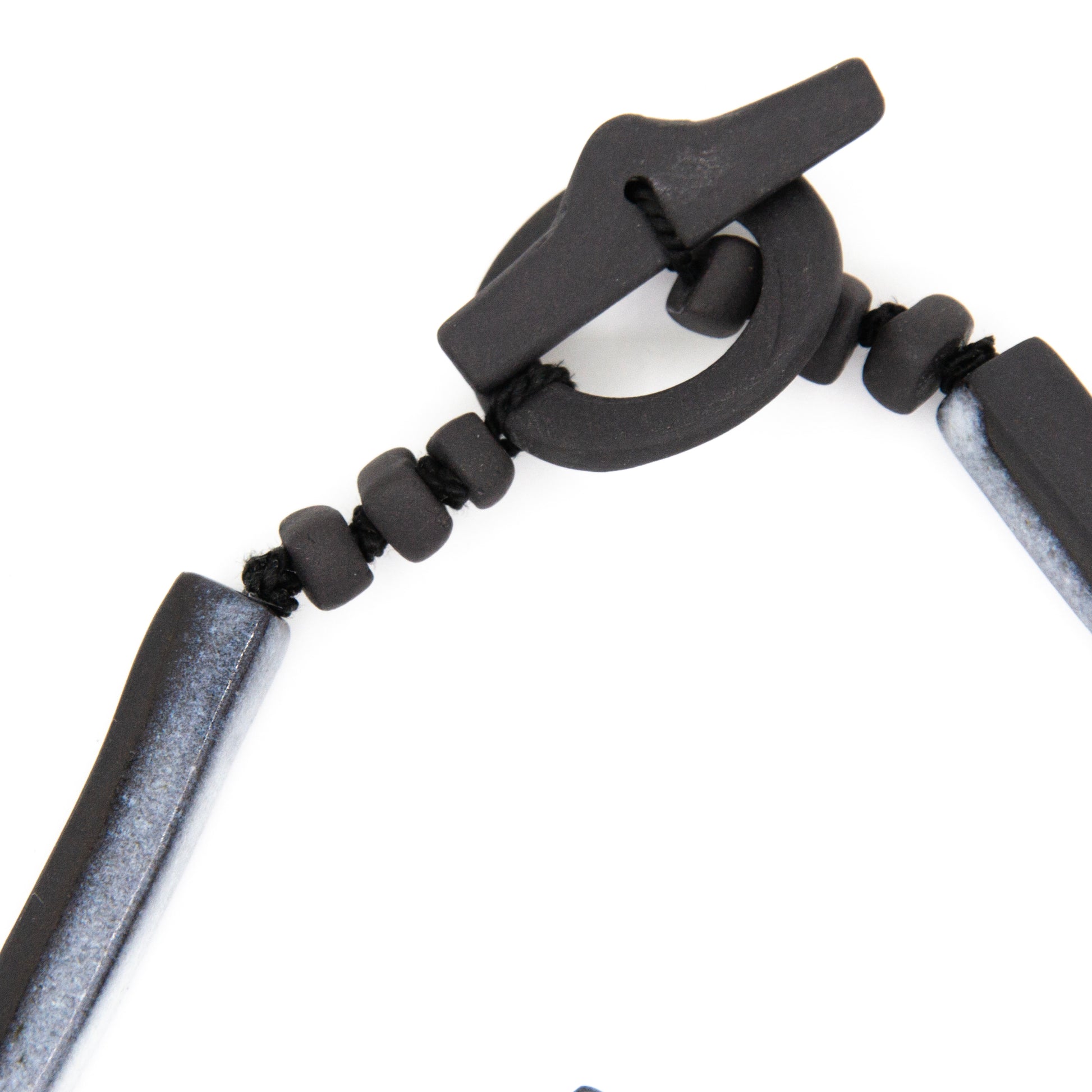 La céramique du fermoir laissée brute est polie pour lui apporter douceur et confort.